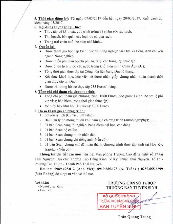 Trường Cao đẳng nghề số 17 BQP – Trung tâm Đào tạo & Cung ứng Nhân lực Quốc tế MĐ Trân trọng thông báo chương trình thực tập hưởng lương […]